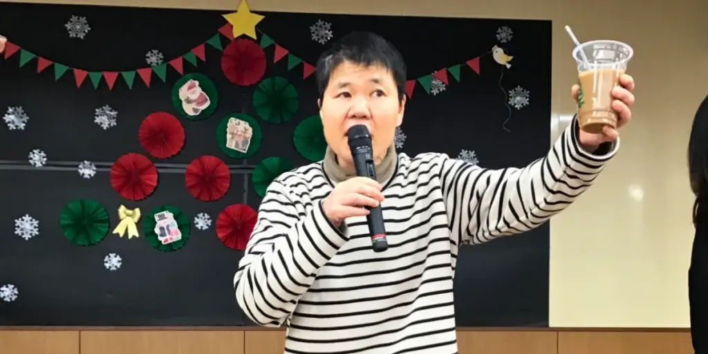 クリスマス忘年会の始まりには、利用者様による乾杯の音頭があり、和やかな雰囲気の中で忘年会がスタートしました。