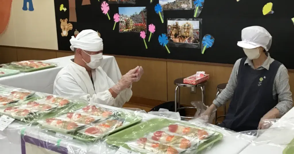 お寿司は、姫路市夢前町にある魚屋「魚光(うおみつ)」さんに来ていただきました。